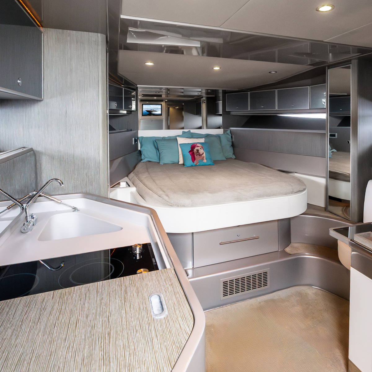 Dotato di un pacchetto completo di navigazione e intrattenimento, tra cui: AIS Manette sostituite Pilota automatico Plotter GPS Log-Tachimetro Ecoscandaglio Bussola VHF Radio Lettore CD/DVD e altoparlanti in cabina di pilotaggio Inverter esterno.