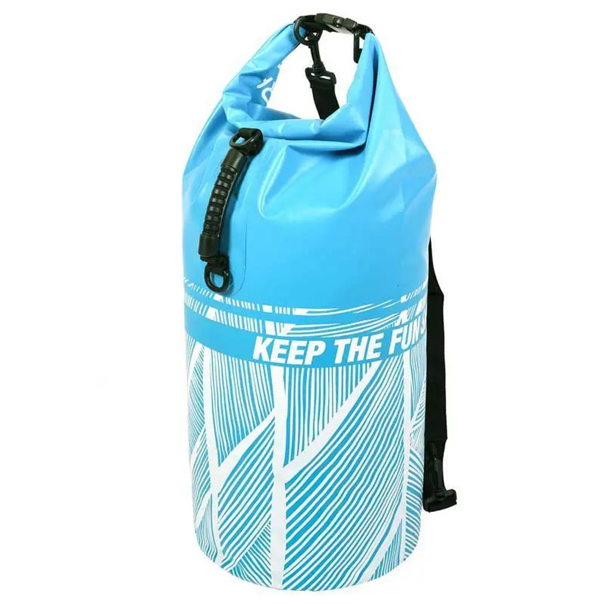 Colore: Blu Dimensioni: Diam. 28 cm x Altezza: 70 cm Tessuto in PVC rinforzato extra leggero Sistema di chiusura pieghevole e impermeabile inoltre, il design include una maniglia di trasporto gommata con anelli a D aggiuntivi per opzioni di fissaggio versatili. 2 tracolle (stile zaino) 1 maniglia aggiuntiva in gomma