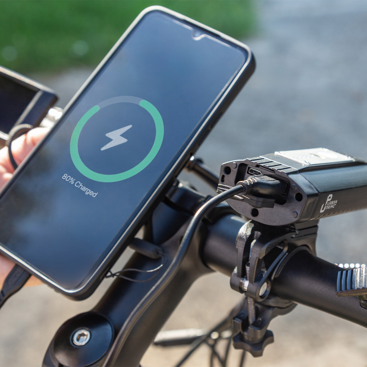 * (Tassazione soggetta a variazione in base al paese)La Luce frontale per bici di Urban Prime ha 3 modalità di illuminazione che permettono di viaggiare in e-bike o e.scooter anche con scarsa luminosità, in totale sicurezza sia nei centri urbani che in mezzo alla natura. Questa luce frontale ultra-luminosa da 500 lumen produce un fascio di luce ampio e uniforme garantendo massima visibilità sulla strada, e in condizione di buio. Disponibili 3 modalità di illuminazione in base all’esigenza. Ora puoi ricaricare il cellulare mentre pedali, grazie alla funzione power bank integrata nella luce frontale Urban Prime. Una pratica porta USB situata sul retro della luce ti permette di ricaricare il tuo smartphone durante la pedalata, garantendoti di essere sempre connesso e pronto ad affrontare qualsiasi imprevisto.