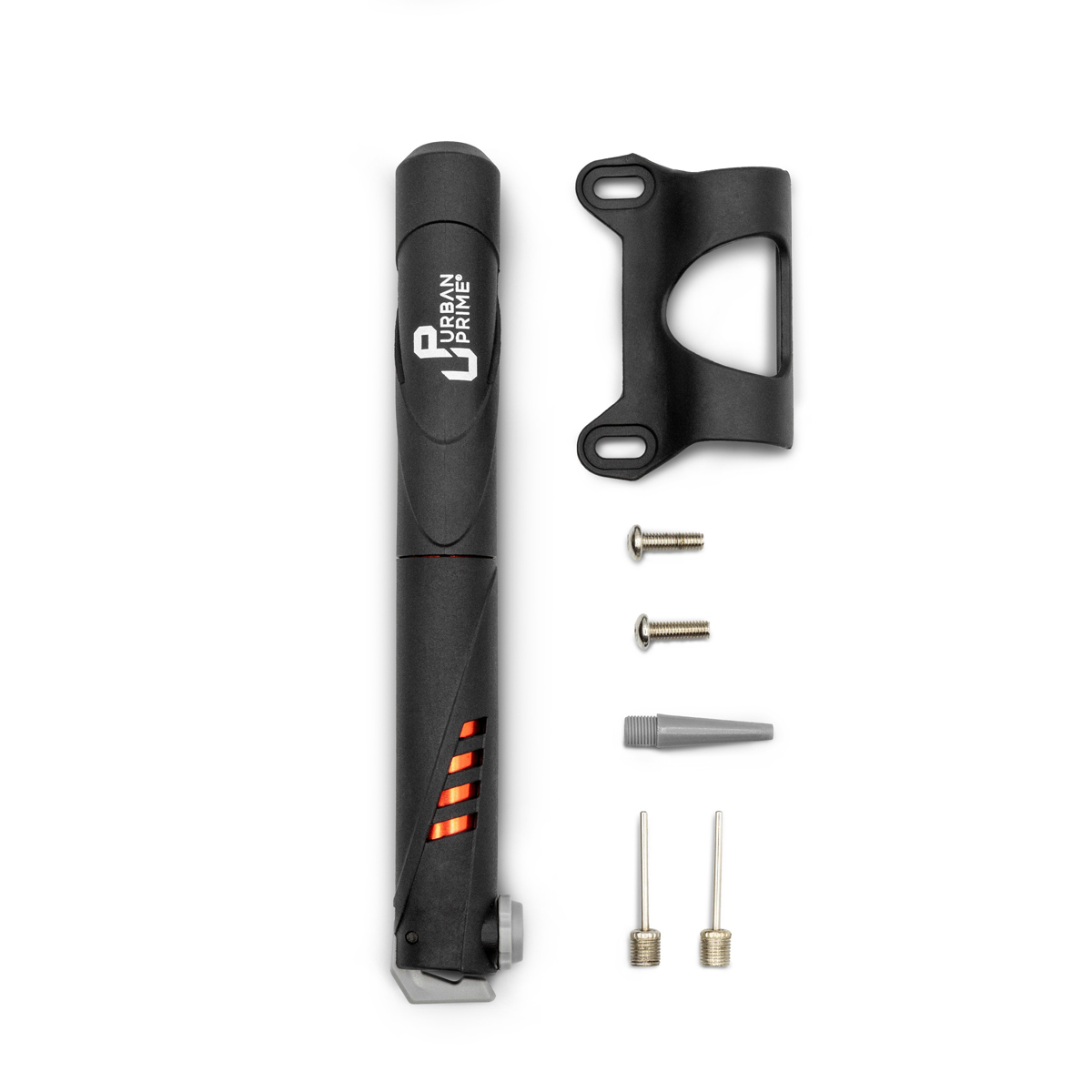 La pompa a mano Urban Prime ha una pressione massima di 130 PSI e permette di gonfiare in modo semplice ed efficiente tutti gli pneumatici. Grazie all’adattatore 2 in 1 già collegato al tubo della pompa è possibile gonfiare sia pneumatici con valvola Schrader che Presta.