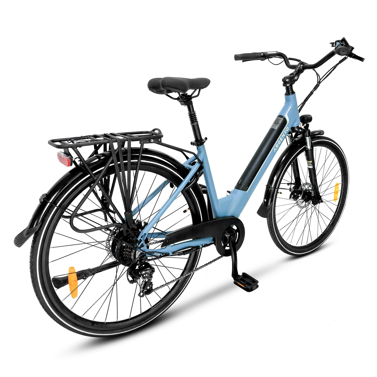 * (Tassazione soggetta a variazione in base al paese)Vivi la città al tuo ritmo con Argento Omega, la city e-bike elegante e funzionale. Motore posteriore 250 W , cambio Shimano a 7 velocità, freni a disco meccanici con sensore cut-off, display LCD impermeabile e batteria estraibile. Con portapacchi da 25 kg e reggisella ammortizzato, è perfetta per ogni spostamento urbano e ti offre un’esperienza di guida confortevole e sicura. Il motore Sutto Bafang 36 V 250 W offre a questa e-bike la giusta potenza per superare senza sforzo salite e pendenze. L’erogazione graduale della potenza rende la guida naturale e fluida. Rinomato per la sua affidabilità e versatilità, questo motore posteriore è perfetto per e-bike da città, trekking e mountain bike. Con 374 Wh e un’autonomia fino a 70 km, la batteria, semi-integrata ed estraibile, è in perfetta armonia col telaio dell’e-bike e offre una duplice soluzione in fase di ricarica. Potrai infatti farlo estraendola dal suo alloggiamento oppure direttamente, lasciandola installata sulla bici.