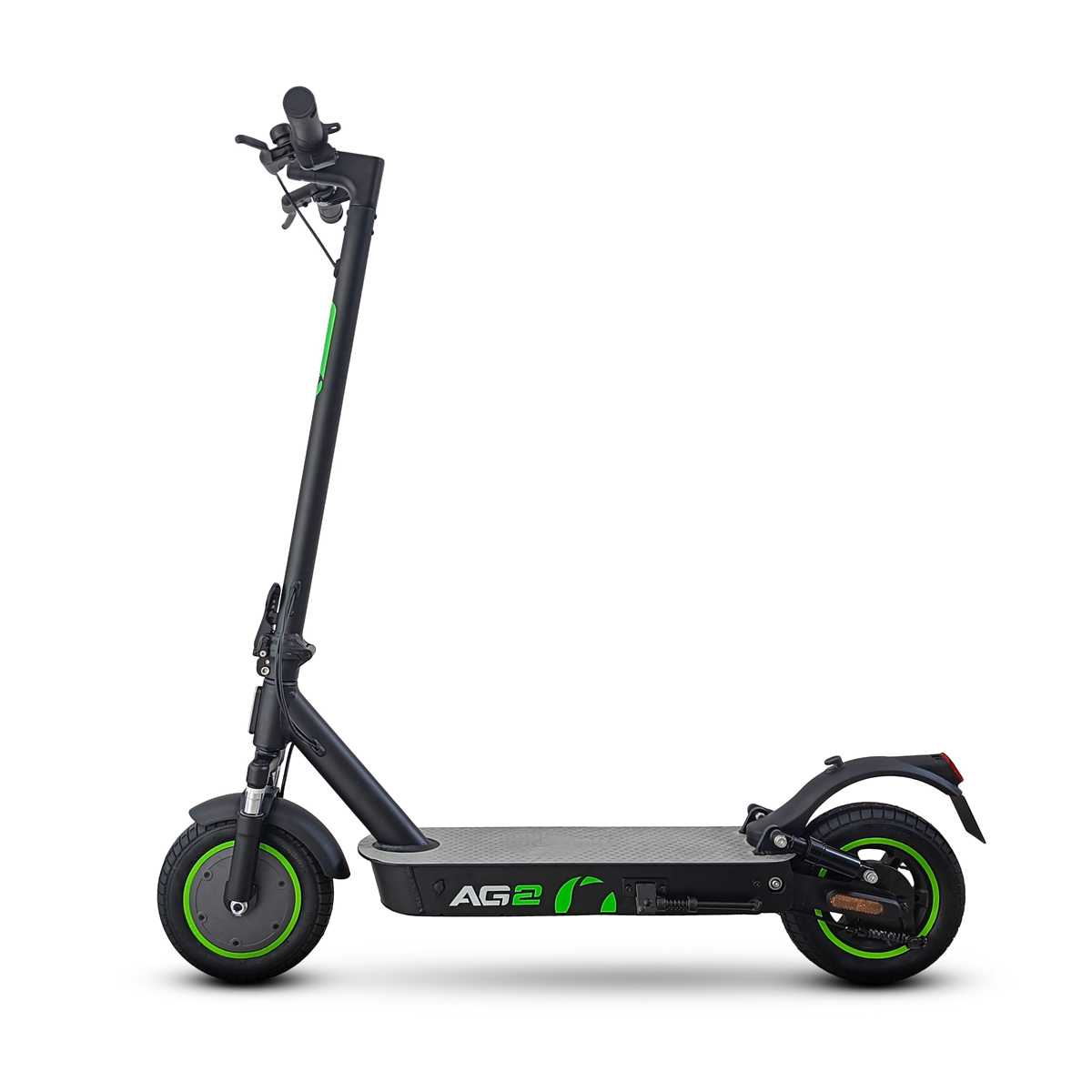 Monopattino elettrico nero e verde su sfondo biancoArgento AG2
